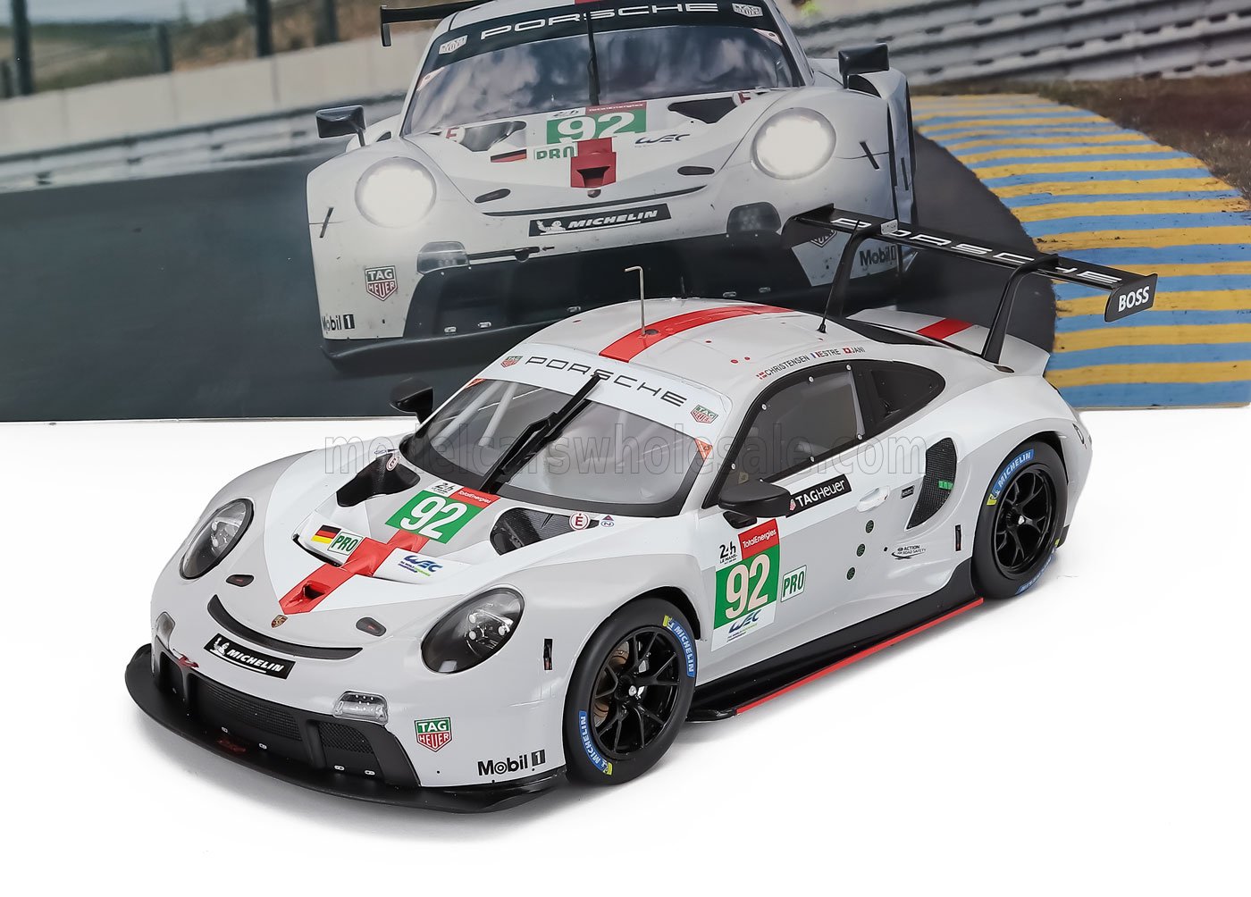 PORSCHE - 911 991-2 RSR-19 4,2 L TEAM PORSCHE GT N.º 92 24 Horas de Le Mans 2021 MICHAEL CHRISTENSEN - KEVIN ESTRE - NEEL JANI - BLANCO, GRIS, ROJO